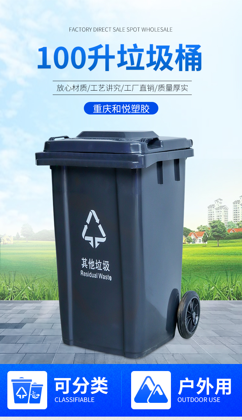 关键词:100L塑料垃圾桶,大容量垃圾桶,环卫垃圾桶